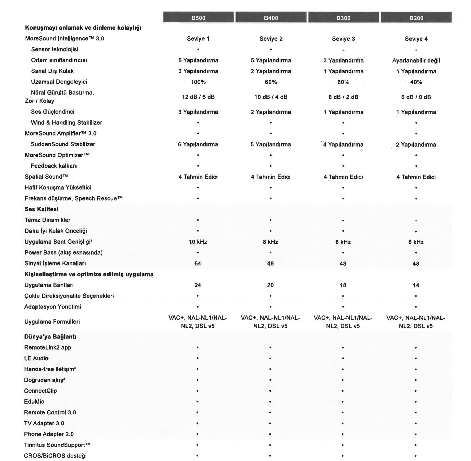 Ancak gürültü baskılama özellikleriyle kolay ve zor ortamlarda kullanıcıları işitsel ihtiyaçlarına göre destekler.