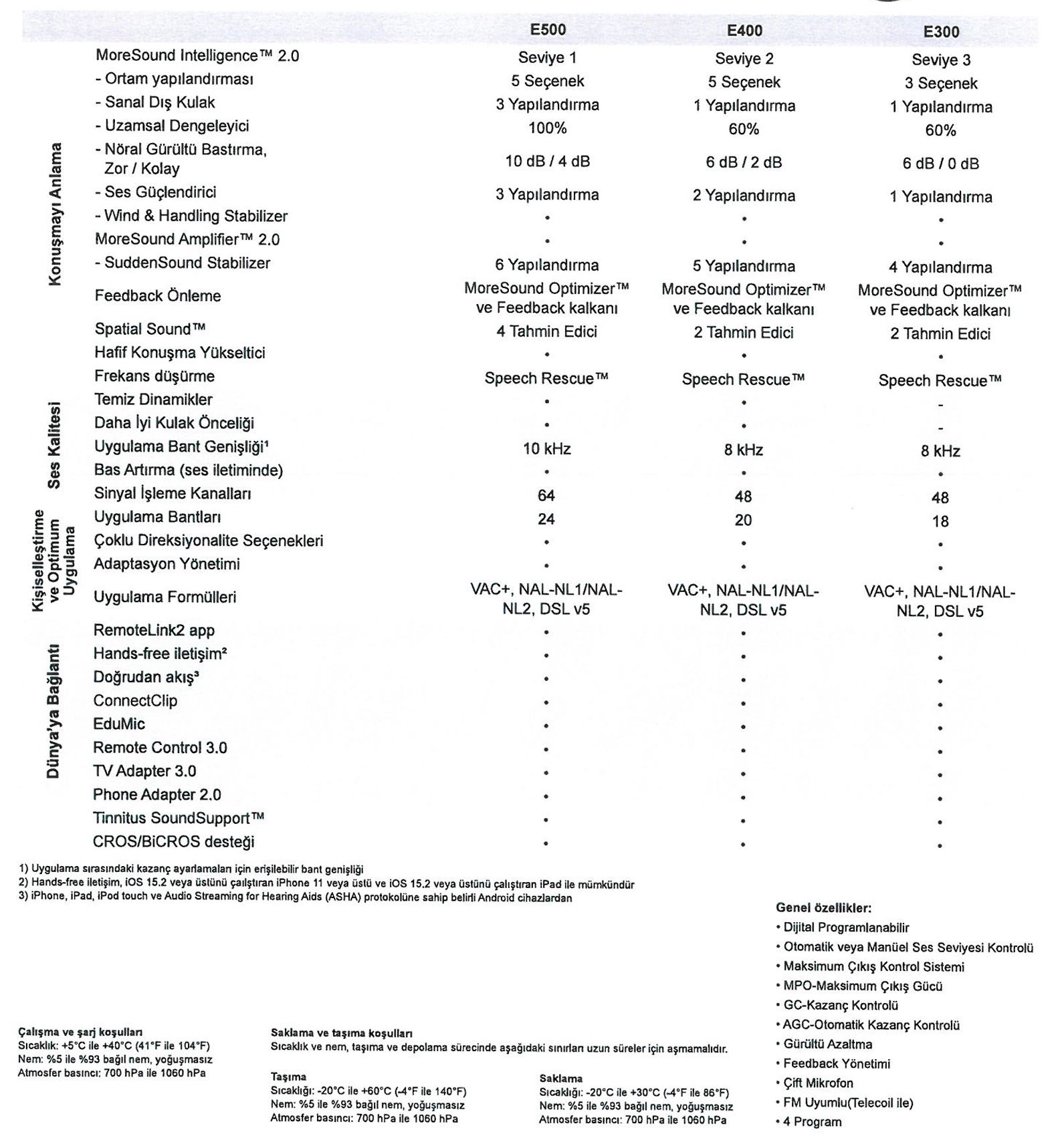 Gürültülü ortamlarda konuşmaların ayırt edilmesi için 6 dB’ kadar gürültü uzaklaştırmaktadır. Audika E500 ve E400’e göre teknoloji seviyesi daha sınırlıdır.