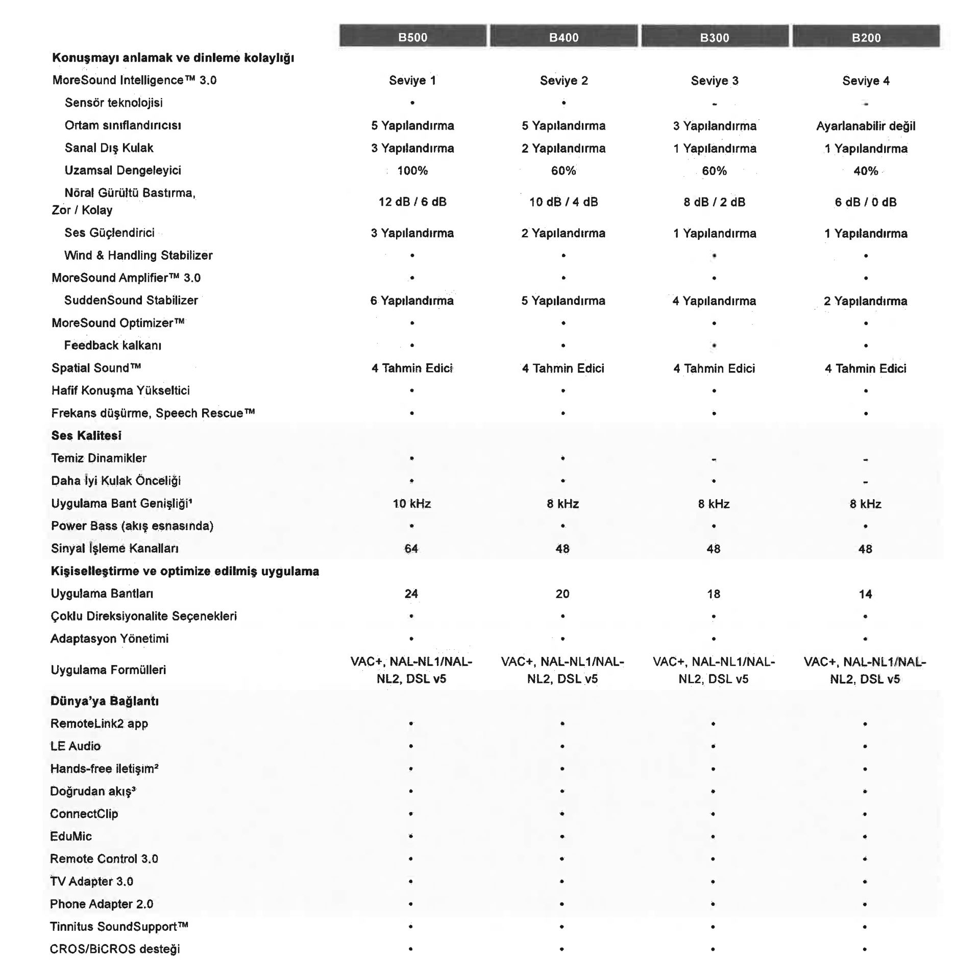 Ancak gürültü baskılama özellikleriyle kolay ve zor ortamlarda kullanıcıları işitsel ihtiyaçlarına göre destekler.