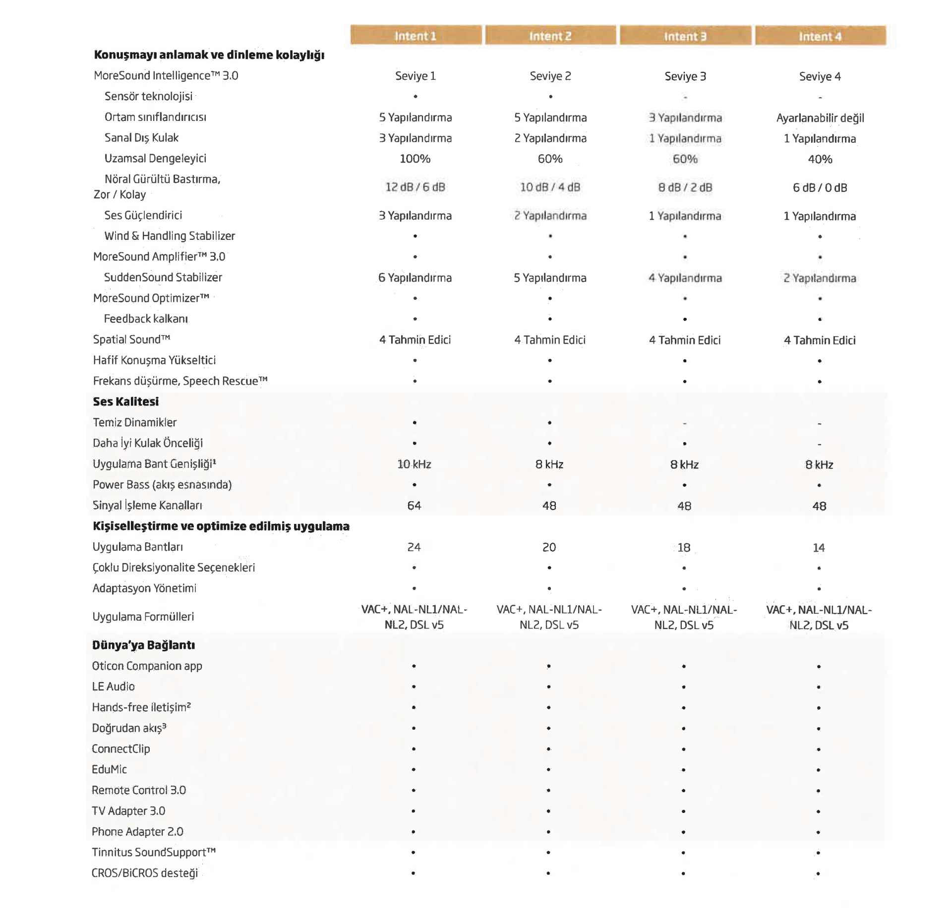 Intent 3 işitme cihazından 4D sensör kullanılmaz. Ancak gürültü baskılama özellikleri ve brainhearing teknolojisiyle birlikte kullanıcıların işitsel ihtiyaçlarına göre kişiselleştirilebilir.