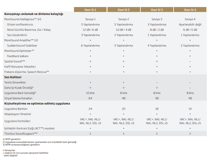 Own SI 3 işitme cihazından 4D sensör kullanılmaz. Ancak gürültü baskılama özellikleri ve brainhearing teknolojisiyle birlikte kullanıcıların işitsel ihtiyaçlarına göre kişiselleştirilebilir.