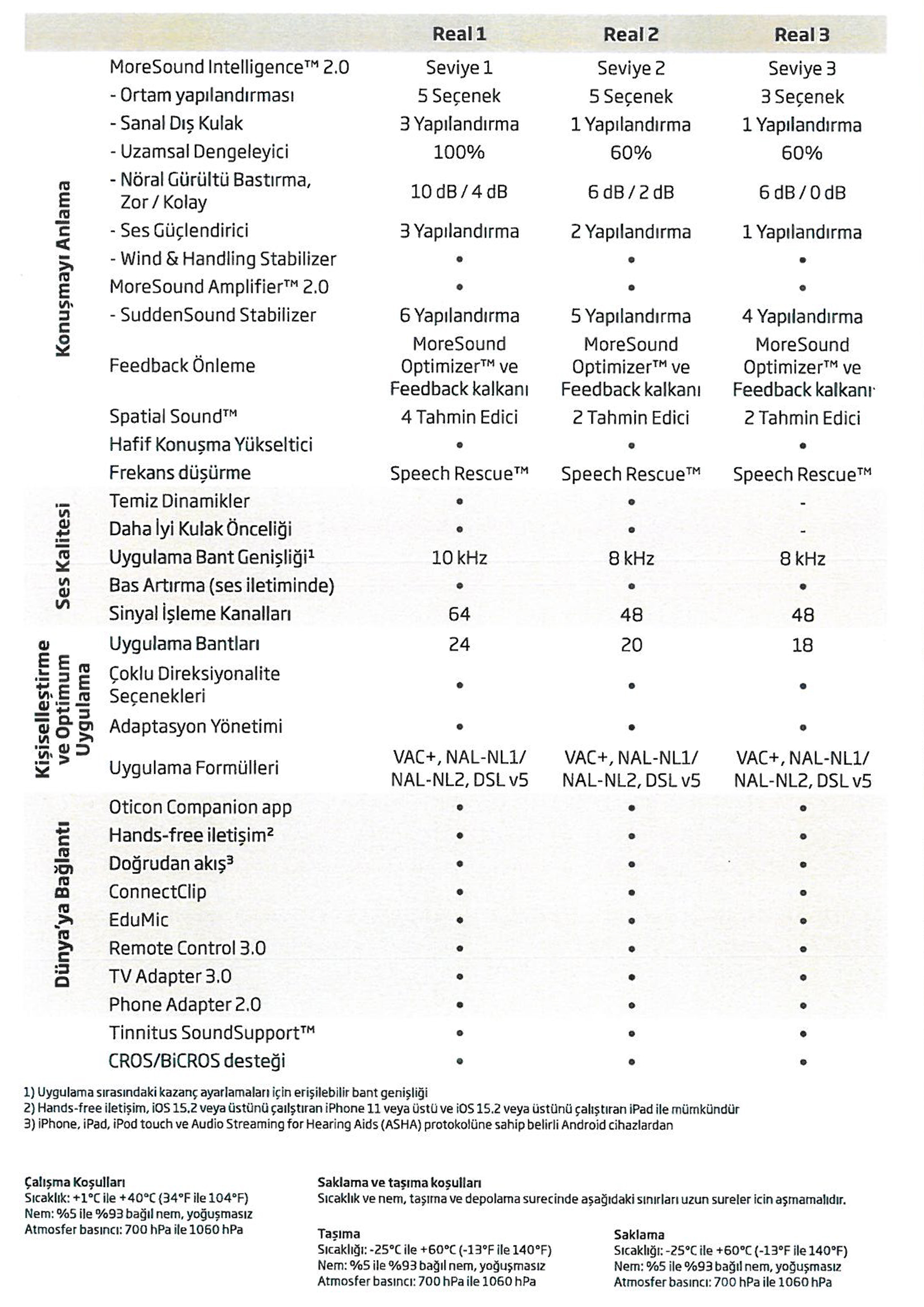 Gürültülü ortamlarda konuşmaların ayırt edilmesi için 8 dB’ kadar gürültü uzaklaştırmaktadır. Real 1’e göre teknoloji seviyesi daha sınırlıdır.